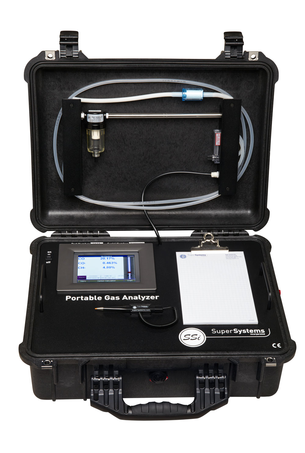 | Flow Meter | Inside case lid and also on-screen |