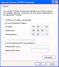 In the Internet Protocol (TCP/IP) Properties window, you will need to select the option for Use The Following IP Address. These settings should match the settings on the Color SDS Data Logger.