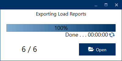 Once complete, you can click Open to view the file location of the reports.