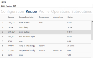 NOTE: Examples shown below are for recipes created using the Step programmer. Depending on your controller, you may also have the option to use the Segment Programmer. For explanations of recipe programming (including Opcodes) refer to the manual for your controller – or a manual for segment programming.