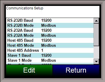 This will allow the user to set the Host 485 mode. This setting is fixed to Modbus for the Touchscreen.