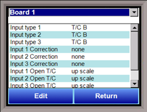 The Auxiliary Analog Input Setup menu option allows the user an input selection of three inputs per board, three input corrections per board, and three input open T/Cs per board. There are eight (8) boards available. It is configurable for voltage of T/C (universal input), and it is typically used for Load T/Cs, motor speed feedback, current speed devices, and Auxiliary Flow Meters.