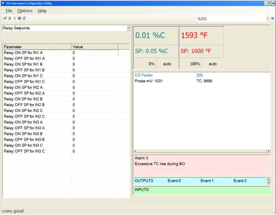 The 9205 controller offers the user three pairs of configurable setpoints for each input. Each pair of setpoints allows the user to configure both ON and OFF trigger points. The values entered are in engineering units based on input configuration.