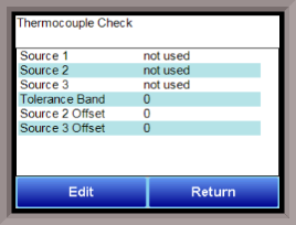 This menu option allows the values between up to three thermocouples to be compared to one another. If the thermocouples go out of band, it is possible to set up an alarm that will alert the operators of this error.