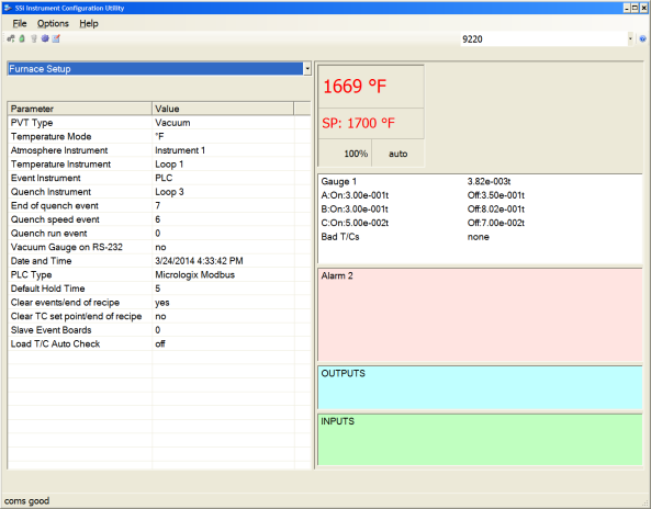 The Furnace Setup menu option is an administrative access only option. Do not make any adjustments on the screen without first contacting Super Systems Inc..