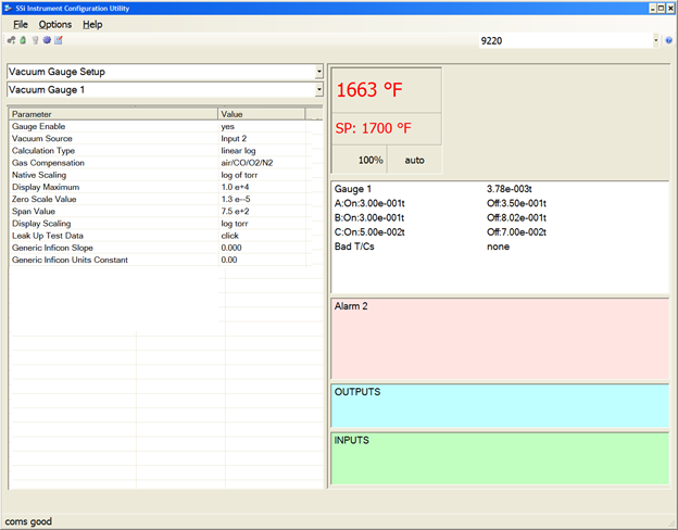 The Vacuum Gauge Setup menu option allows the users the ability to set up four different vacuum gauges, which can be selected from the lower drop-down list.