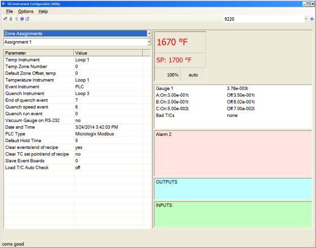 The zone assignment feature allows the Series 9220 program to change set points on all instruments of a multi-zone furnace.  The Series 9220 has up to five temperature zone assignments available (Zone Assignment 1Zone Assignment 5).   Typically, the first zone is configured to the programmer’s temperature instrument.  That is the master set point that will be propagated to the other configured zone instrument set points on set point change.  For example, the user may want to set 4 temperature zones from a recipe where the programmer temperature instrument is loop 2.  In this case, zone 1 would be configured as loop 2.  Subsequent zones would be configured as previously configured Client temperature controllers.