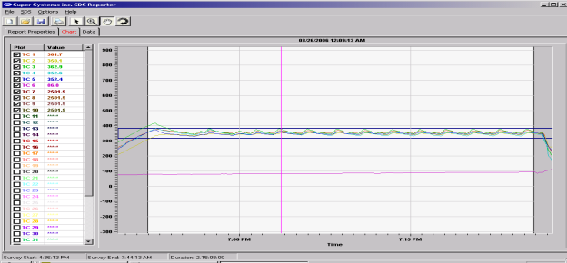 Note: checking or unchecking TCs on the Chart Tab will affect the Active TCs on the Report Properties – Thermocouples tab.