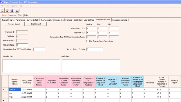 *The offsets for the T/C Wire Correction can be adjusted solely for the purpose of the comparison by checking the box on the Comparison Check page labeled Use Custom Wire Corrections.