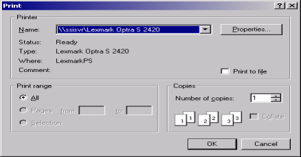 The Print Report menu option will allow the user to print out a copy of the .SDSReport file. The user will have to select the printer to print the report (Figure 80 - Print prompt screen).