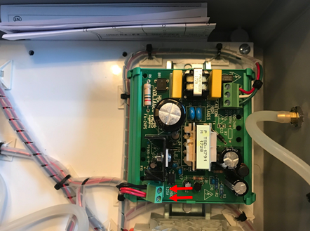 If there is no voltage on these wires, there is no outside power to the DPC2530. If there is power to these wires, verify that the 2 amp circuit breaker is not tripped. Reset the breaker, which should supply power to the analyzer.