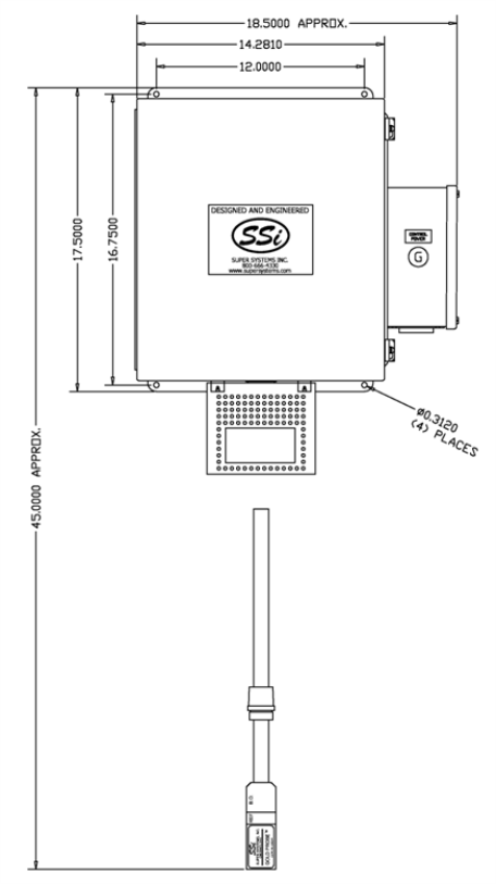 Dimensional Drawing of HP15-VR Heater Enclosure with Sensor Inserted