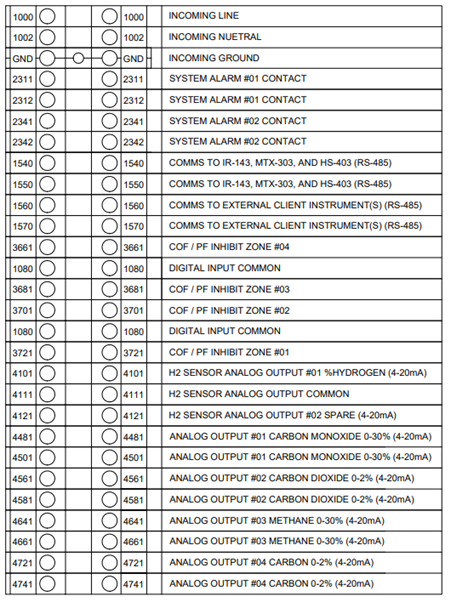 Each terminal block is numbered according to the included electrical drawing. Knockout holes in the enclosure have been provided to simplify wiring connections. Knockouts are located on the bottom of the enclosure. Additional or alternate locations can be added as needed. Please note that due to the potential for electrical interference, it is recommended that communication wires not be run in parallel to AC power wires.