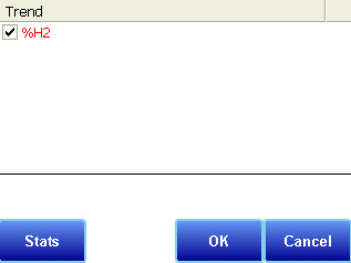 - will display a screen with the trend data in a grid format instead of with trend lines. The trend data is shown in 1-minute intervals. Clicking on the OK button on this screen will close the screen down and return to the Chart Display screen.