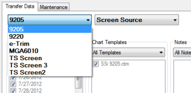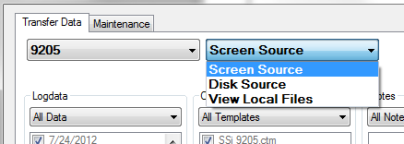 The Transfer Data tab also contains the sub menus of Logdata, Chart Templates, Notes, and Device.