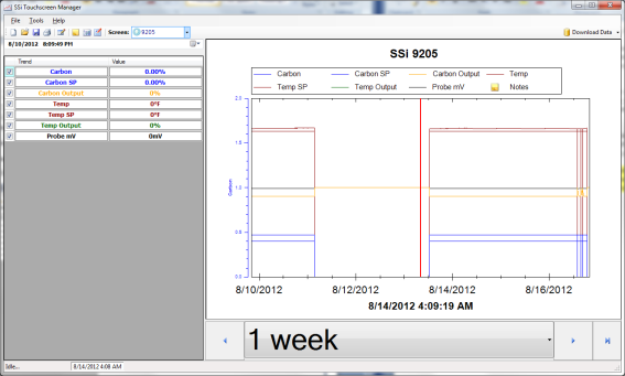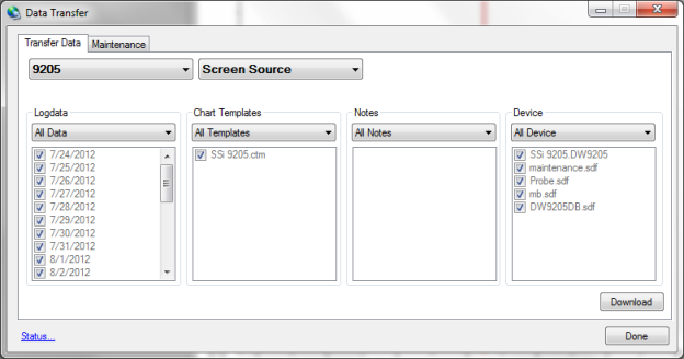 To download data, press the Download button. Press the Done button to exit the Advanced Download & Maintenance view. Once data has been downloaded, the default view of TS Manager will display the chart for the selected screen: