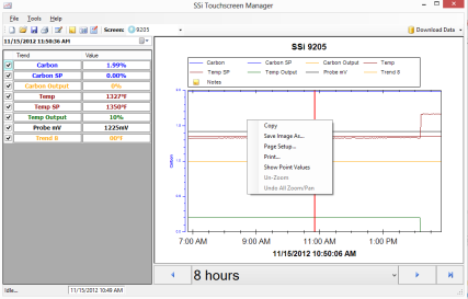 By right clicking with a mouse on the chart you have options for Copy, Save Image, Page Setup, Print, Show Point Values, Un-Zoom, and Undo All Zoom/Pan.